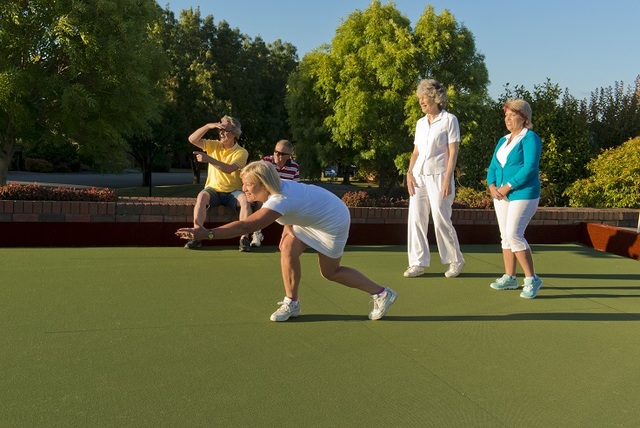 6. Outdoor amenities include a competition-size bowling green, caravan and boat parking, community garden, resident’s workshop, reserves and walking paths.
