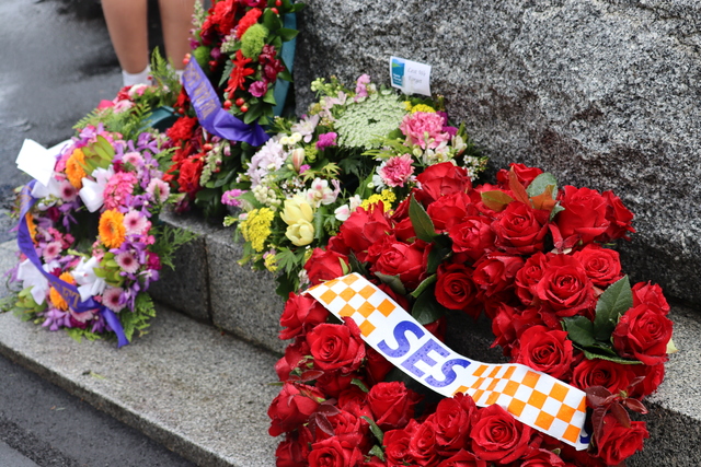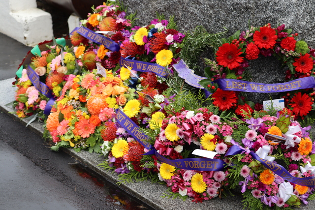 This was followed by a procession of wreaths being laid at the cenotaph, while piper Rob McKay sounded The Lament.
