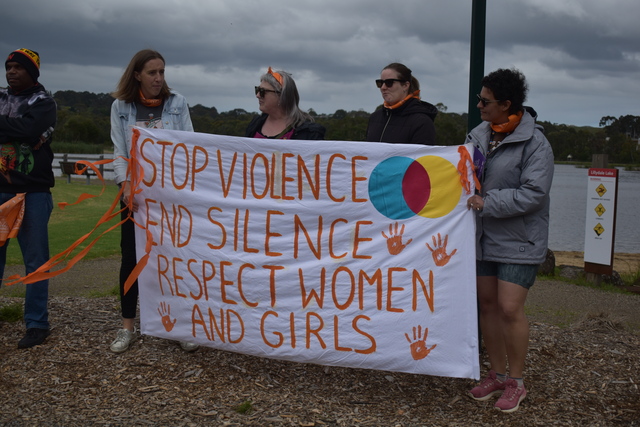 MC for the event Steve led the walk around the lake, with periodic stops to discuss the issue of gender-based and family violence and to invite speakers from local groups and organisations.