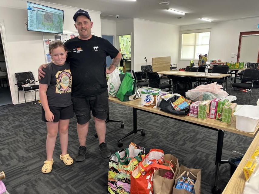 In a single week, Meat Inn Place, supported by the broader community, was able to provide 700 slabs of water plus other drinks, 500 cases of snack foods and non-perishable supplies, 1000 bread rolls and 400 loaves of bread, 100 cases of medical and hygiene supplies, 100 bags of clothing and bedding and around $5000 worth of fencing supplies.