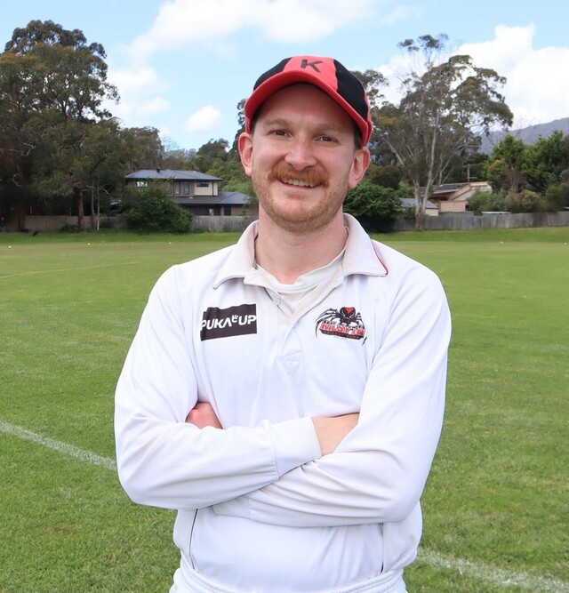 The Third XI (third) journeyed to Hoddles Creek to play Hoddles Creek First XI who were sixth on the Don Smith Shield ladder. It was a historic match in that it was the first time a Kilsyth CC team had actually played at the beautifully scenic Hoddles Creek Reserve. Both teams had previously played each other in Round 1 at Kilsyth with Hoddles Creek winning 7/206cc to Kilsyth’s 7/176cc. On Saturday, Kilsyth won the toss and elected to bat. However, the Redbacks lost wickets in the third and fourth overs to be 1/8 and 2/17. Then Andrew Woolhouse and Mark Unternahrer added 70 for the third wicket to see Kilsyth 3/87 after 16 overs. Woolhouse was the third wicket to fall for 23 off 34 balls (5 fours) with Unternahrer 42* at that stage. After Captain Robert Hutchings and Mark Unternahrer had added a further 39 for the fourth wicket, Unternahrer had reached 71* after 25 overs, with 15 overs remaining. Later, on the third ball of the 37th over, Mark Unternahrer brought up his third consecutive century with a single through the offside with the score now 4/184. A 68-run fifth-wicket partnership between Unternahrer and Steve Galea came to an end on the second ball of the 39th over after Galea had struck the first ball of the over for six. He was out for 25 off 43 balls (1 four and 2 sixes) and the partnership with “Unters” had lifted the score to 5/194. Kilsyth lost another wicket in the same over, bowled by Oscar Lyons, to be 6/200 after 39 overs and the innings ended on 6/202cc from the allotted 40 overs. As mentioned earlier, Mark Unternahrer finished on a magnificent 103*, including 18 fours. For Hoddles Creek, Oscar Lyons was the multiple wicket taker with 2/40 off 8 overs (1 maiden).